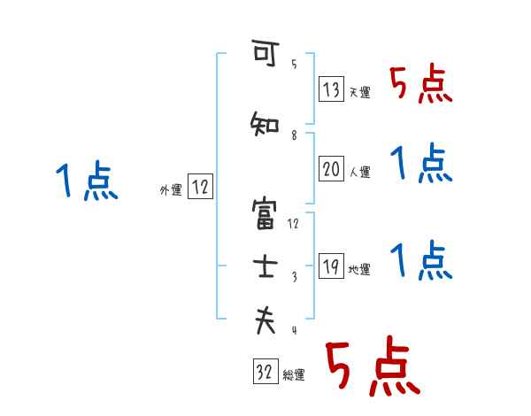 総運![]() | 可知富士夫さんの総運は32画の5つ星!柔軟性があり成功する。チャンスが多く金運が良い。 あなたの人生を表す1番重要な運勢です。生涯を通じて影響する総合運となり、主に50歳以降の晩年期に影響を及ぼします。 |