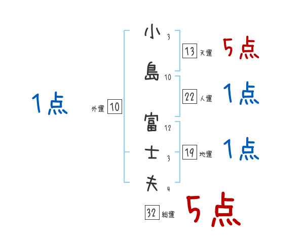 小島富士夫さんの画数の鑑定結果