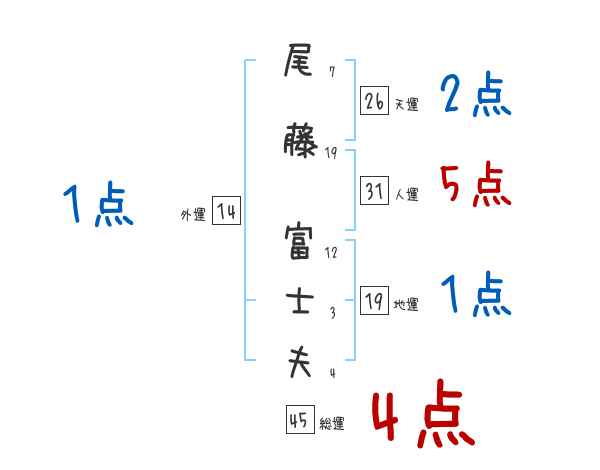 地運![]() | 尾藤富士夫さんの地運は19画の1つ星!優れた才能を持ちますが、協調性が足りないことも。周りの人と協力する事を意識しましょう。 個性を表す基礎的な運勢です。性格形成や対人関係、行動力など家庭環境に影響されます。主に誕生してから20歳くらいまでの若年期の運勢を表します。 |