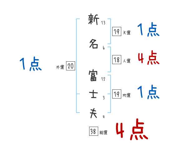 天運![]() | 新名富士夫さんの天運は19画の1つ星!優れた才能を持ちますが、協調性が足りないことも。周りの人と協力する事を意識しましょう。 家系が持つ宿命的な運勢を表します。祖先から受け継いだ苗字ですので自分の力が及びません。家柄を象徴します。 |