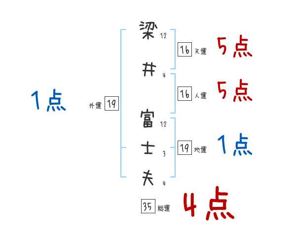 梁井富士夫さんの画数の鑑定結果