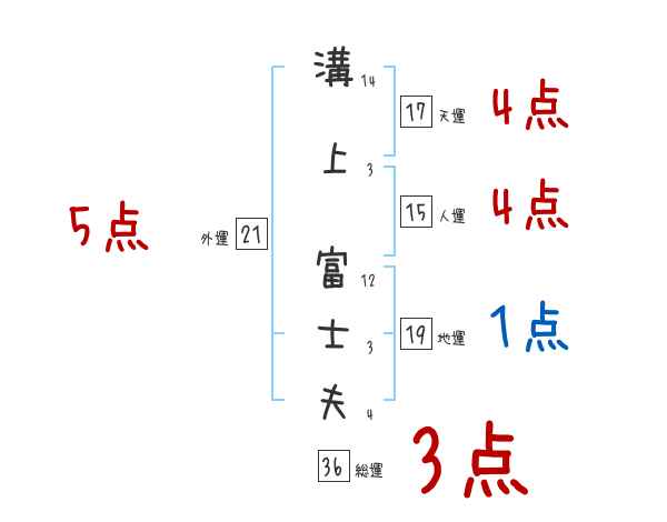 外運![]() | 溝上富士夫さんの外運は21画の5つ星!統率力がある。独立し成功する。名誉を手に入れる。 生活面を象徴する運勢です。外部から受ける影響力を表し、結婚運、家庭運や職場、環境への順応性を表します。 |