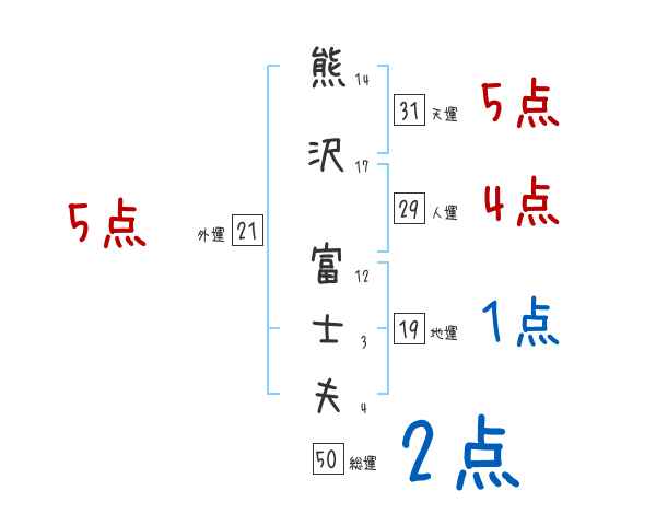 熊沢富士夫さんの画数の鑑定結果