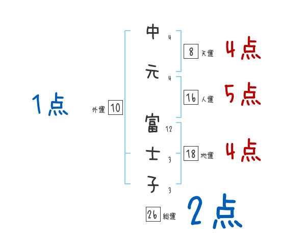 人運![]() | 中元富士子さんの人運は16画の5つ星!人望が厚く大きく発展する。逆転成功が見える。 性格や才能などを表す2番目に重要な運勢です。人間関係や協調性、社会的な成功に影響します。主に20歳から50歳ぐらいまでの中年期の運勢を表します。 |
