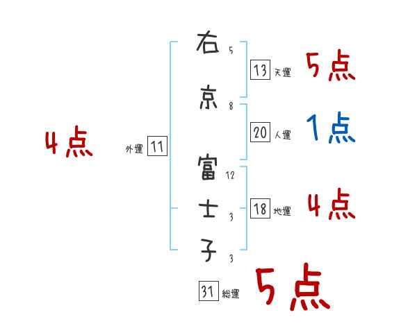 右京富士子さんの画数の鑑定結果