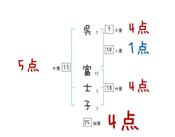 呉富士子さんの画数の鑑定結果