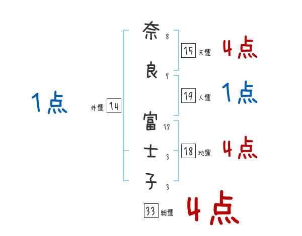 奈良富士子さんの画数の鑑定結果