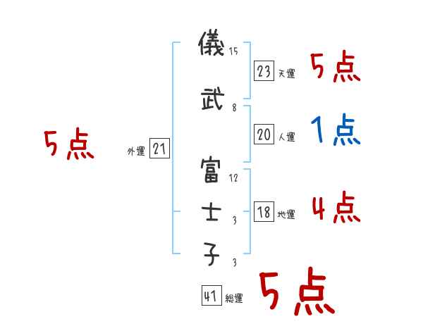 儀武富士子さんの画数の鑑定結果