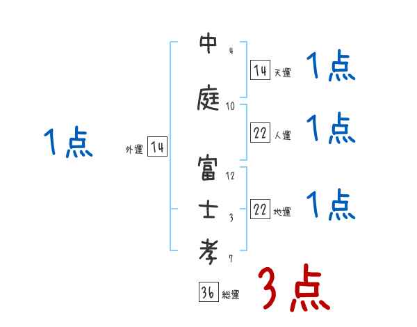 中庭富士孝さんの画数の鑑定結果