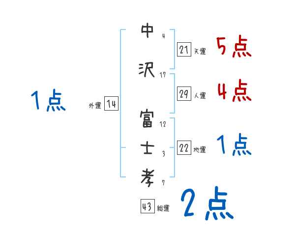 中沢富士孝さんの画数の鑑定結果