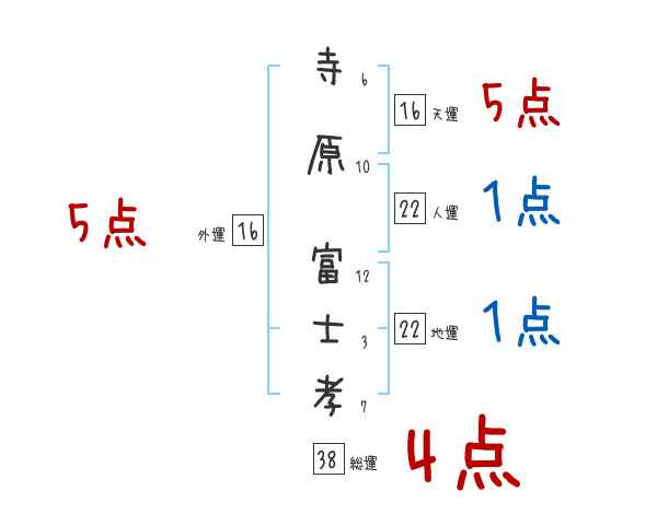寺原富士孝さんの画数の鑑定結果