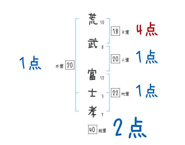 家系が持つ宿命的な運勢を表します。祖先から受け継いだ苗字ですので自分の力が及びません。家柄を象徴します。