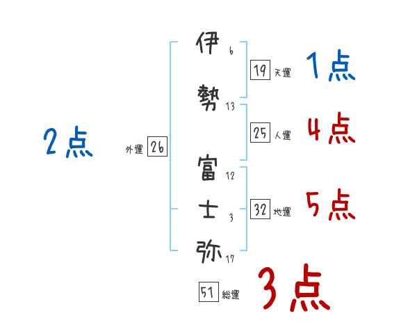 外運![]() | 伊勢富士弥さんの外運は26画の2つ星!波瀾万丈かも。信頼できる人を大事にしましょう。 生活面を象徴する運勢です。外部から受ける影響力を表し、結婚運、家庭運や職場、環境への順応性を表します。 |