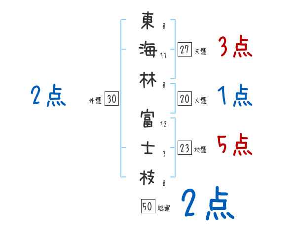 外運![]() | 東海林富士枝さんの外運は30画の2つ星!浮き沈みの激しさに注意しましょう。 生活面を象徴する運勢です。外部から受ける影響力を表し、結婚運、家庭運や職場、環境への順応性を表します。 |