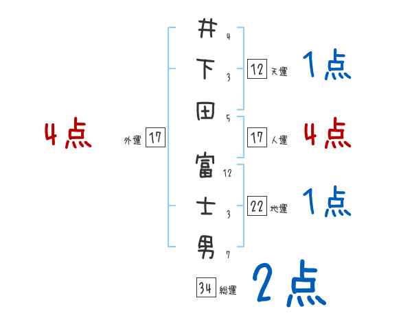 井下田富士男さんの画数の鑑定結果