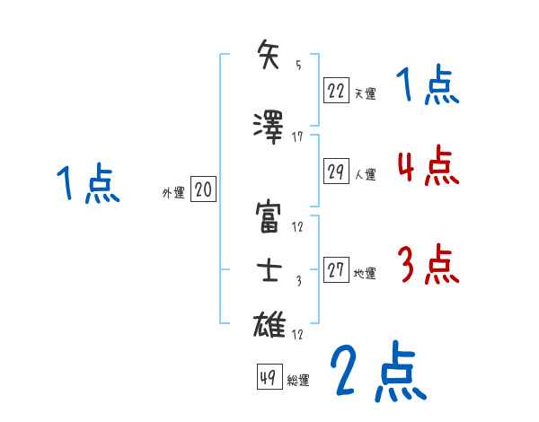 矢澤富士雄さんの画数の鑑定結果