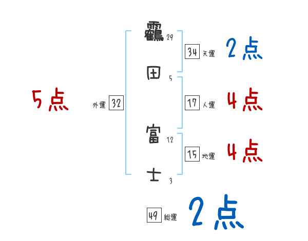 外運![]() | 靏田富士さんの外運は32画の5つ星!柔軟性があり成功する。チャンスが多く金運が良い。 生活面を象徴する運勢です。外部から受ける影響力を表し、結婚運、家庭運や職場、環境への順応性を表します。 |