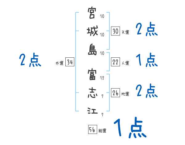 宮城島富志江さんの画数の鑑定結果