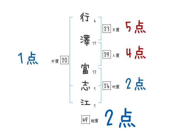 行澤富志江さんの画数の鑑定結果