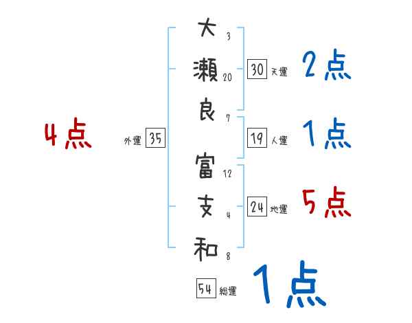 大瀬良富支和さんの画数の鑑定結果