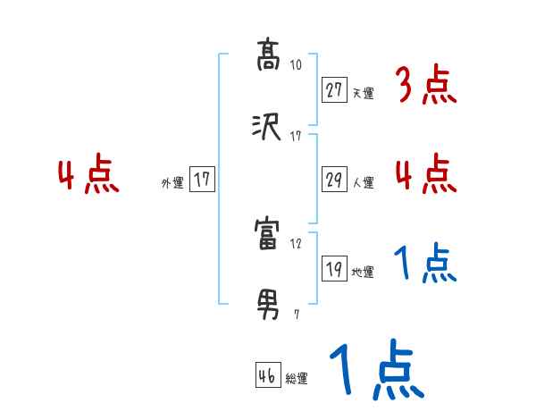 髙沢富男さんの画数の鑑定結果