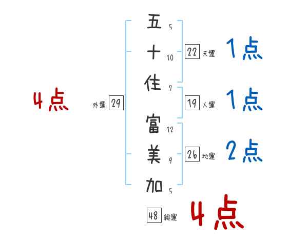 五十住富美加さんの画数の鑑定結果