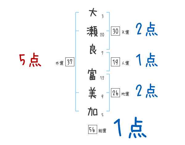 大瀬良富美加さんの画数の鑑定結果