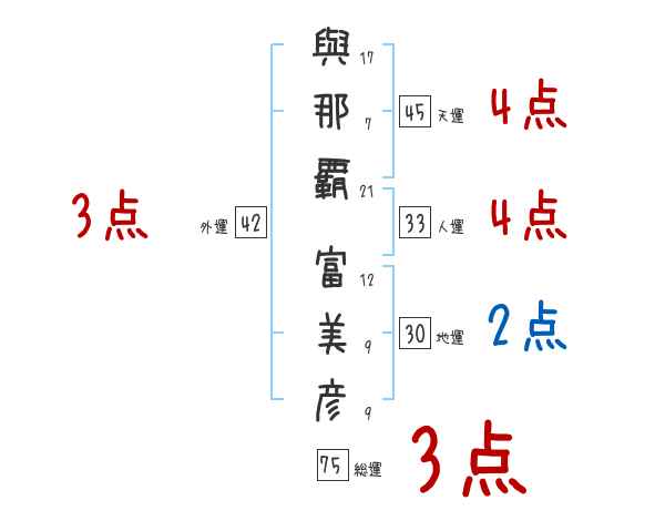 與那覇富美彦さんの画数の鑑定結果