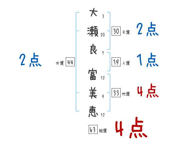 大瀬良富美恵さんの画数の鑑定結果