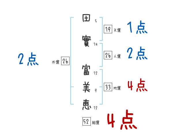 外運![]() | 田實富美恵さんの外運は26画の2つ星!波瀾万丈かも。信頼できる人を大事にしましょう。 生活面を象徴する運勢です。外部から受ける影響力を表し、結婚運、家庭運や職場、環境への順応性を表します。 |