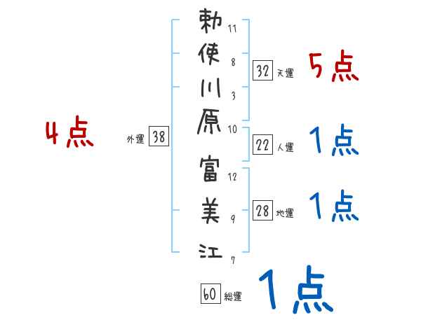 天運![]() | 勅使川原富美江さんの天運は32画の5つ星!柔軟性があり成功する。チャンスが多く金運が良い。 家系が持つ宿命的な運勢を表します。祖先から受け継いだ苗字ですので自分の力が及びません。家柄を象徴します。 |