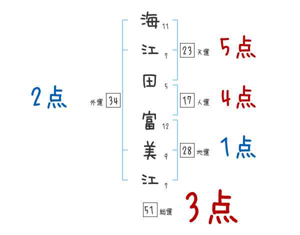 海江田富美江さんの画数の鑑定結果