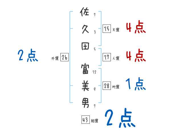 佐久田富美男さんの画数の鑑定結果