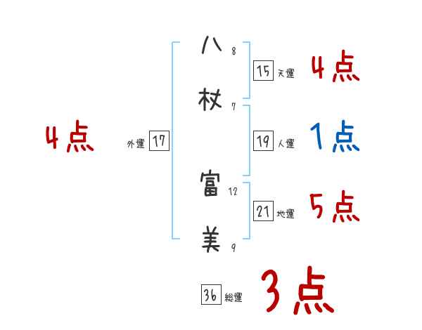 天運![]() | 八杖富美さんの天運は15画の4つ星!人徳があり出世する。順調に物事を進め円満な人生。 家系が持つ宿命的な運勢を表します。祖先から受け継いだ苗字ですので自分の力が及びません。家柄を象徴します。 |