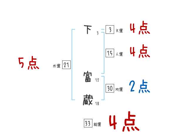 家系が持つ宿命的な運勢を表します。祖先から受け継いだ苗字ですので自分の力が及びません。家柄を象徴します。