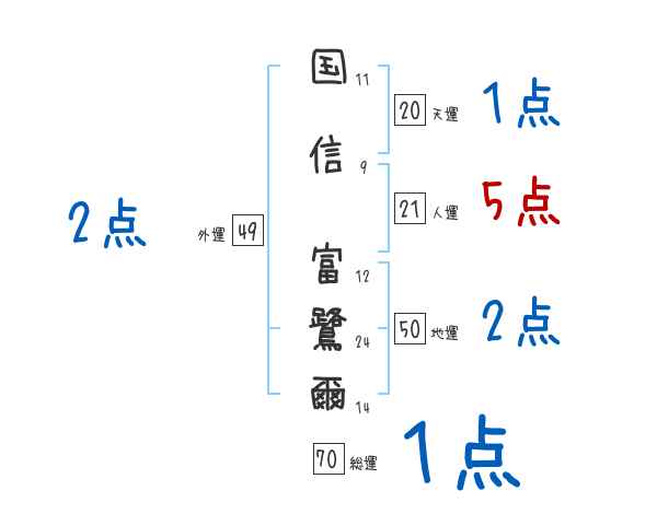 国信富鷺爾さんの画数の鑑定結果