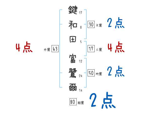 鍵和田富鷺爾さんの画数の鑑定結果