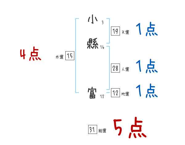 小縣富さんの画数の鑑定結果