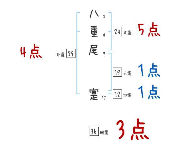 八重尾寔さんの画数の鑑定結果