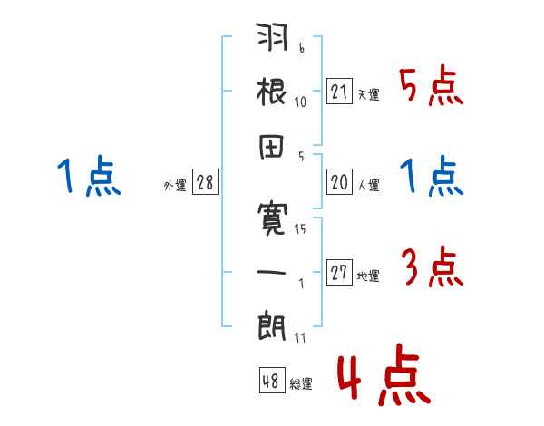 羽根田寛一朗さんの画数の鑑定結果