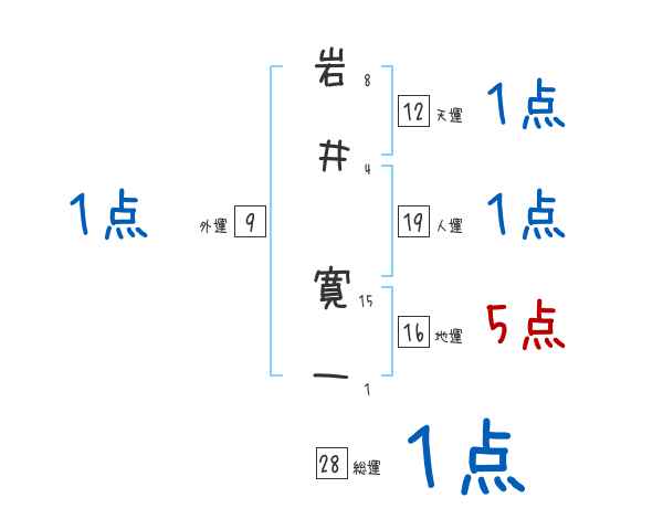 岩井寛一さんの画数の鑑定結果