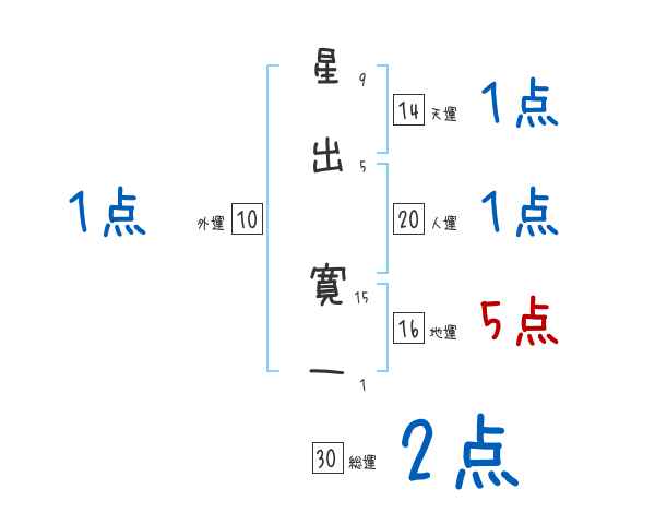 外運![]() | 星出寛一さんの外運は10画の1つ星!不安を感じやすい傾向。ストレスを抱えないように注意しましょう。 生活面を象徴する運勢です。外部から受ける影響力を表し、結婚運、家庭運や職場、環境への順応性を表します。 |