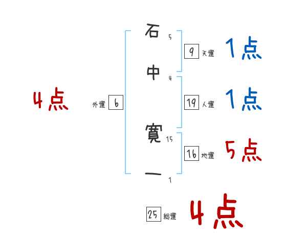 石中寛一さんの画数の鑑定結果