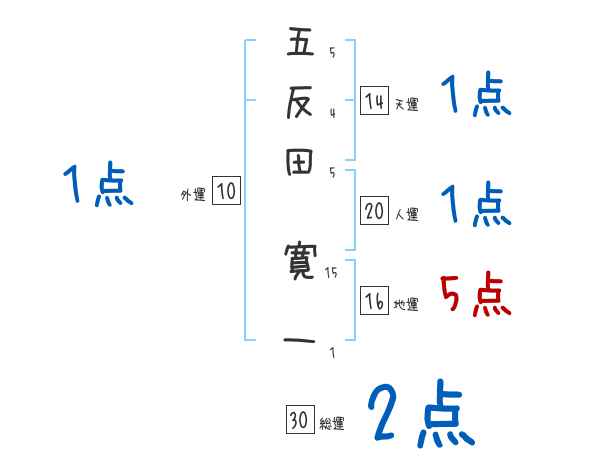 五反田寛一さんの画数の鑑定結果