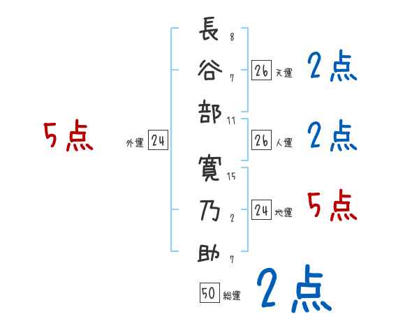 長谷部寛乃助さんの画数の鑑定結果