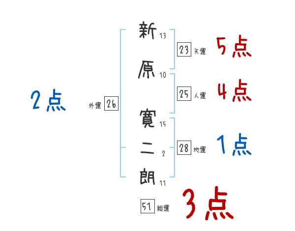 新原寛二朗さんの画数の鑑定結果