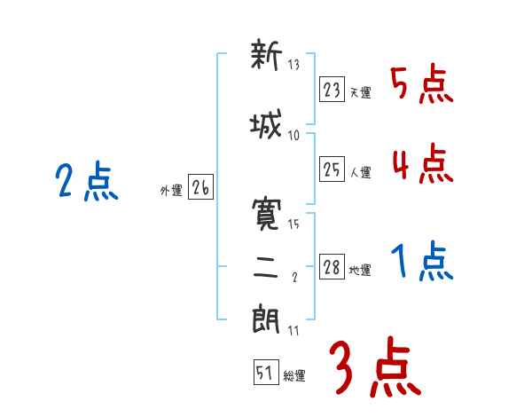 新城寛二朗さんの画数の鑑定結果