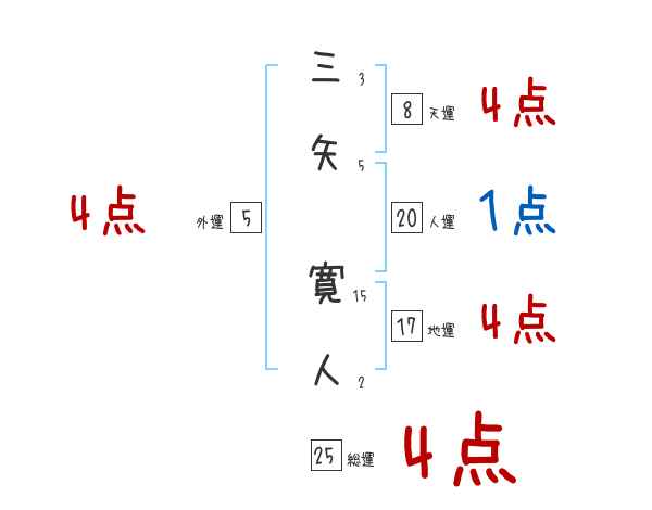 三矢寛人さんの画数の鑑定結果