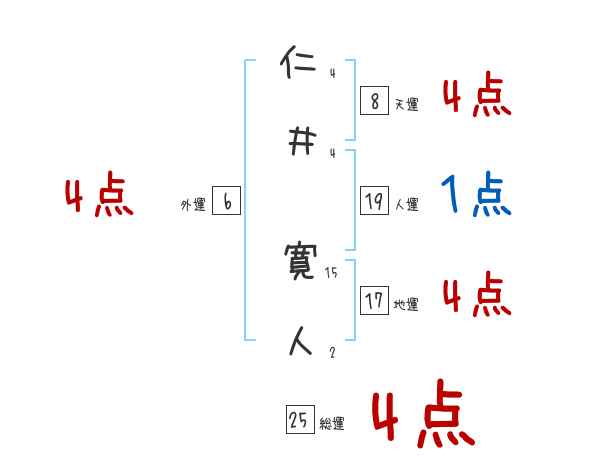 仁井寛人さんの画数の鑑定結果