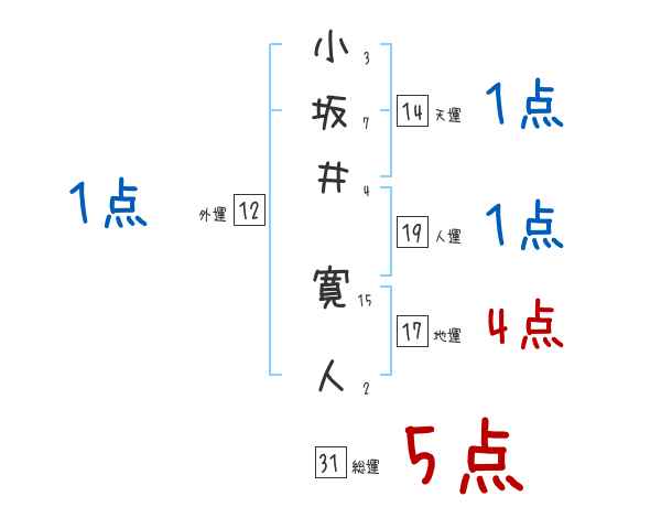 小坂井寛人さんの画数の鑑定結果
